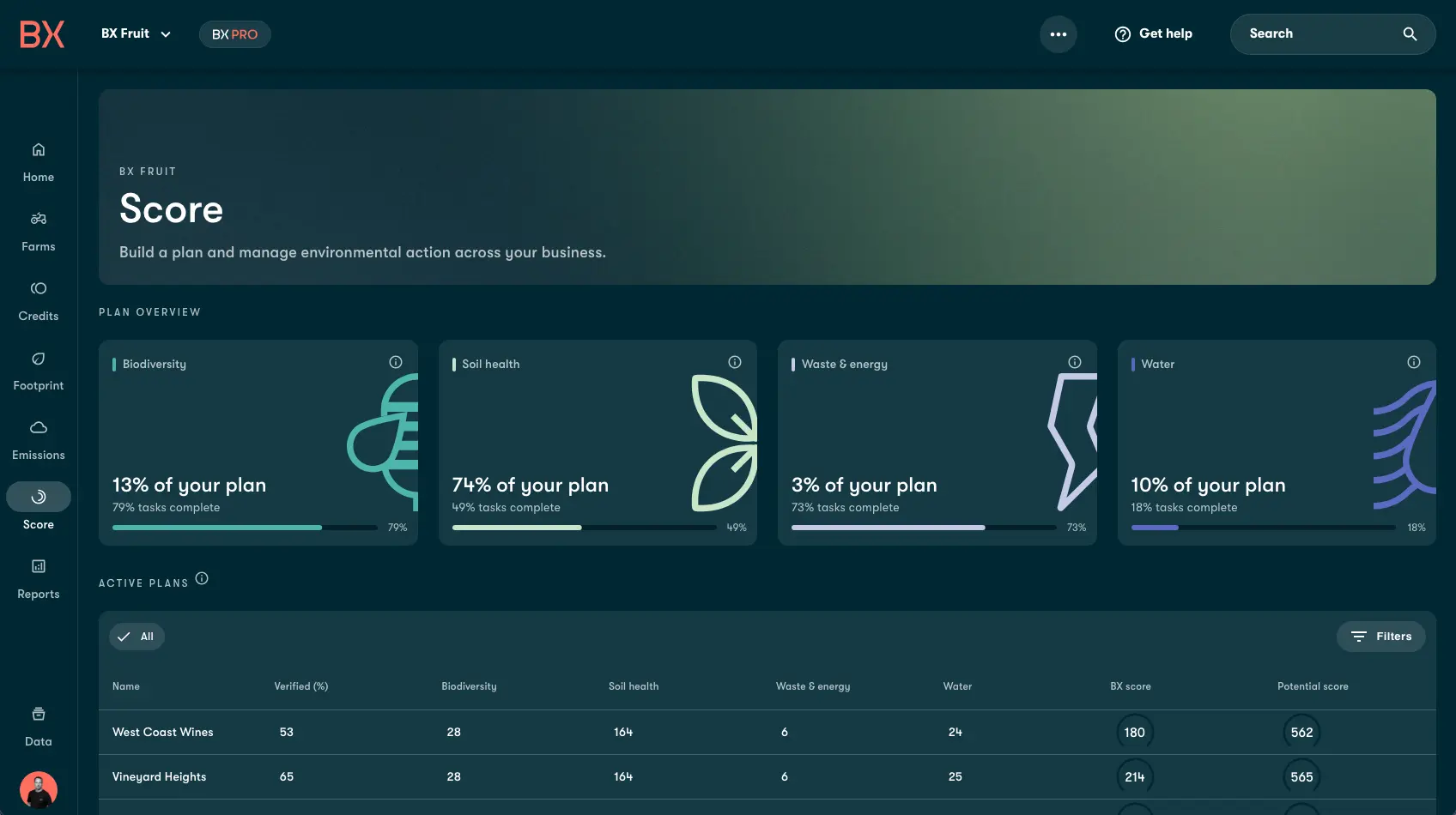 Your BX Score evaluates your farms regenerative agriculture approach, giving farms a score out of 1000 across carbon, water, biodiversity and waste. Learn how to build your score